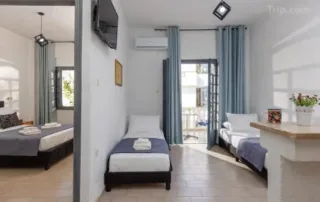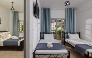 The room has 2 Double beds + 3 single beds. It is fully air-conditioned, it has soundproofed windows and blackout curtains.